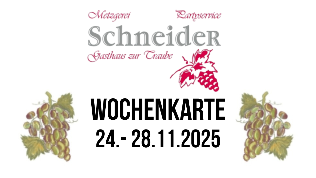 Metzgerei Ralf Schneider Wochenkarte 24.11-28.11.2025 Firmen, Produkte und Dienstleistungen aus der Region zwischen Karlsruhe und PforzheimVeröffentlicht von Metzgerei Schneider in Gastro & Kulinarik · Montag 24 Nov 2025