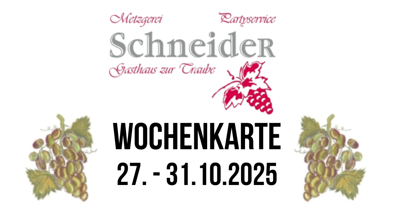 Metzgerei Ralf Schneider Wochenkarte vom 27.-31.10.2025 Firmen, Produkte und Dienstleistungen aus der Region zwischen Karlsruhe und PforzheimVeröffentlicht von Metzgerei Schneider in Gastro & Kulinarik · Sonntag 26 Okt 2025