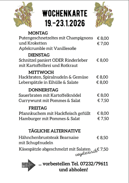 Wochenkarte 19.-23.01.2026 Metzgerei Ralf Schneider Firmen, Produkte und Dienstleistungen aus der Region zwischen Karlsruhe und PforzheimVeröffentlicht von Metzgerei Schneider in Gastro & Kulinarik · Sonntag 18 Jan 2026